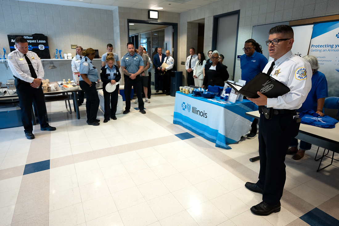 ![]() ![]() ![]() ![]() ![]() ![]() ![]() ![]() ![]() ![]() ![]() 24 SEP 2025: Robert Swiderski and his team started their journey of Operation Serve and Protect walk. The walk will reach all 22 district stations through 26 SEP 2025. The purpose is to raise awareness of the tragedy of Officers death by suicide and the importance of Officers' mental health. Robert is seen in the 004th District explaining the weight Officers carry. Chaplain Hysni Selenica offered some words of wisdom and a prayer. |