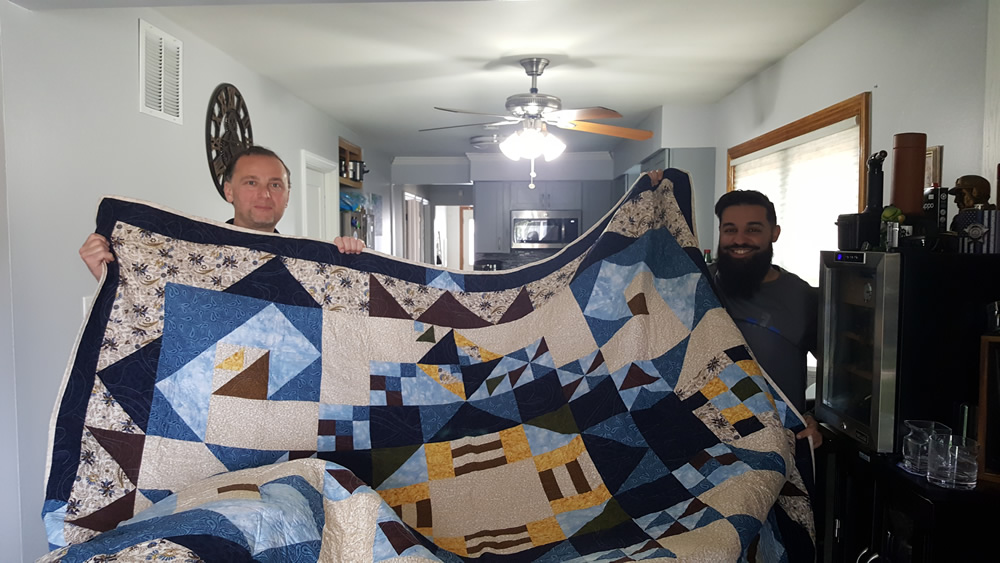 August 31, 2021: Chicago Police Officer Michael Kocerka was presented a quilt by Chaplain Hysni Selenica and Robert Montelongo on behalf of Quilts for Cops. March 25, 2021: Officer Kocerka responded to a call of a person shot at the Home Depot at around the location of the 4500 block on south Western Ave. Officer Kocerka suffered a gunshot wound when he confronted the offender who had just shot and killed the Home Depot security guard. Officer Kocerka's action and other responding officers on scene help diffuse the threat from other citizens from being shot by the offender. |
