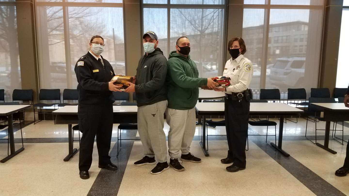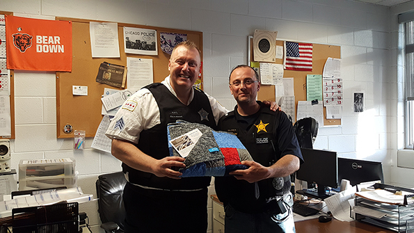 ![]() Feb. 25, 2021: Chicago Police Officer Isaac Varela and Officer Luis Otero receive a handmade quilt by Quilts for Cops in the 12th District. Commander Gabriella Shemash presented a quilt to Officer Varela along with Captain Beth Giltmier presenting a quilt to Officer Otero. Sgt. Victor Media, Chaplain Kimberly Lewis-Davis, Chaplain Joseph Jackson and Chaplain Hysni Selenica offered some words of wisdom during the presentation. Aug. 30, 2020: Officer Varela and Officer Otero were assisting on a traffic stop at 3309 W. Polk at about 2:33 a.m. as Officer Varela and Officer Otero were attempting to place the offender in custody, at which point the offender reached for a cancelled handgun and shot Officer Otero and Officer Varela. The offender then fired several rounds at the other officers on scene. |