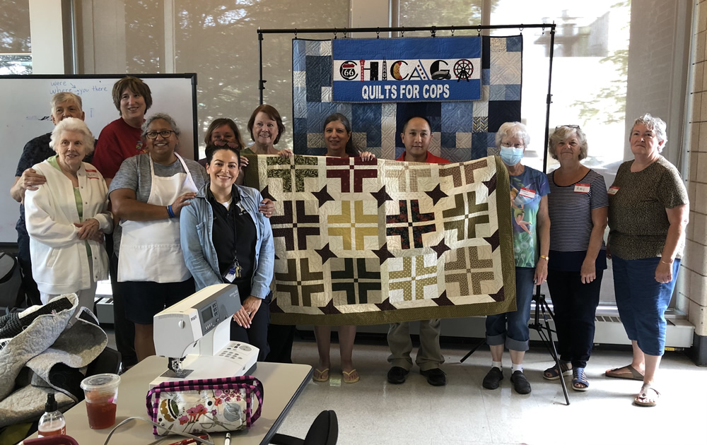 ![]() 17 JUL 2021: The Chicago Chapter of Quilts for Cops assembles in the community room at the 016th district to sew quilts for police officers injured in the line of duty. More information about Quilts for Cops can by found by clicking HERE. |