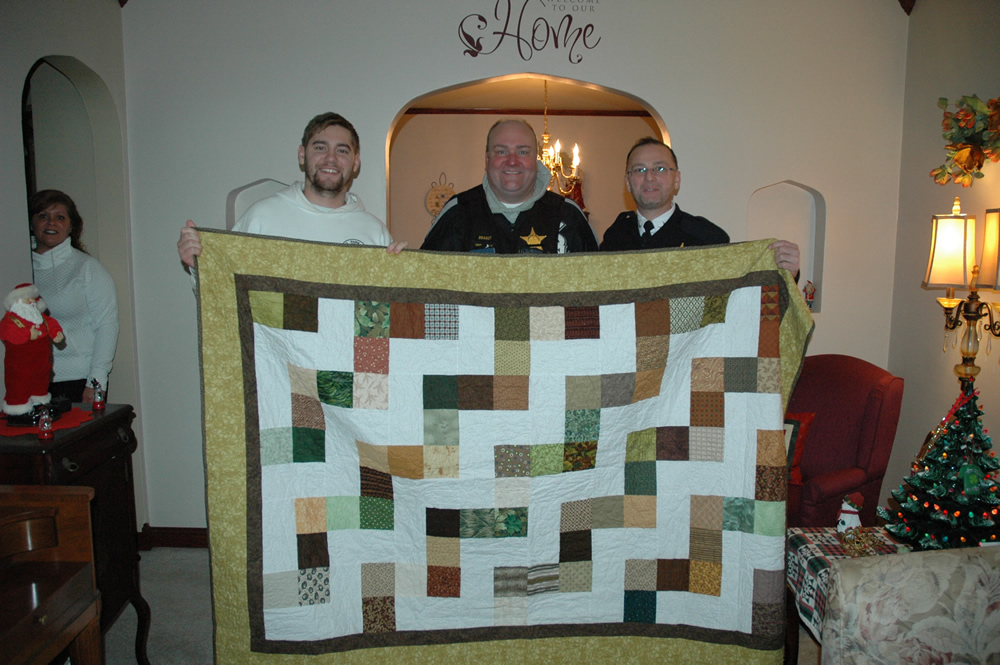![]() 30 DEC 2020: Chicago Police Directing Chaplain Father Dan Brandt presents a handmade quilt on behalf of “Quilts for Cops” to Officer Christopher Mc Mahon. Attending the presentation were Chaplain Bob Montelongo and Chaplain Hysni Selenica who offered other gifts of appreciation. On 17 JUL 2020, Officer Mc Mahon was injured while in the performance of his duties in Grant Park guarding the Columbus statue, hundreds of violent protesters and threw objects at the officers, causing injuries to several officers. Thanks to the entire “Quilts for Cops” team for your service in bringing comfort and a smile to all office. |