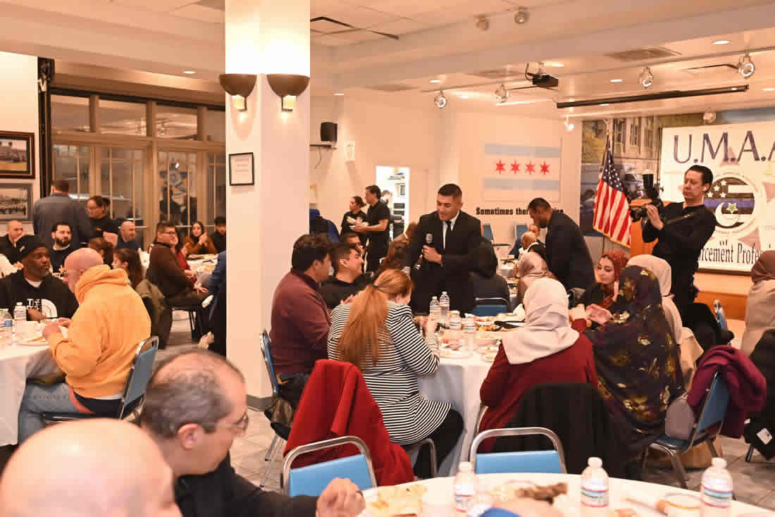 ![]() ![]() ![]() ![]() ![]() ![]() ![]() ![]() ![]() ![]() ![]() 24 FEB 2026: The United Muslim American Association of Law Enforcement Professionals (UMAALEP) hosted a Ramadan dinner at The Lodge 7 FOP Hall. Many police officers of the Muslim faith and their families attended as they anticipate for sunset in order to break their fast. Lt. Syed Quardi as the Emcee, engaged with everyone the entire night. Rabbi Moshe Wolf stopped in giving words of wisdom, telling jokes and passing out candy. This was a great night of fellowship where officers of all faith backgrounds break bread together as Lent and Ramadan began at the same time this year. |